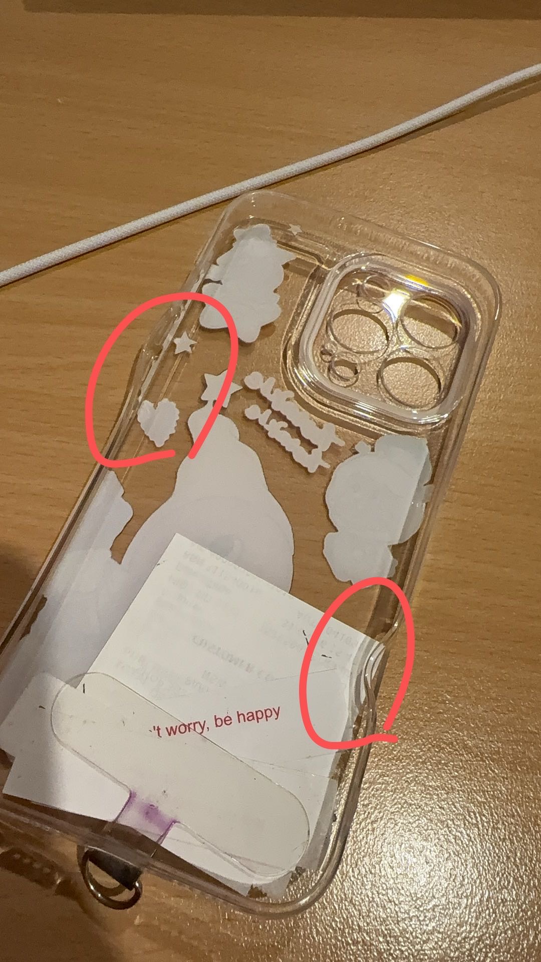 一開始收到貨的時候找不到買的的手機殼,後來拆開盲盒才發現被塞到吊卡裏頭擠一起了,當初明明有備註只留外帶不要盒子 鞋子也是不要盒子,結果收到的時候盒子都留著,然後為了省空間把我手機殼都塞變形了,真心有夠心疼也很無語