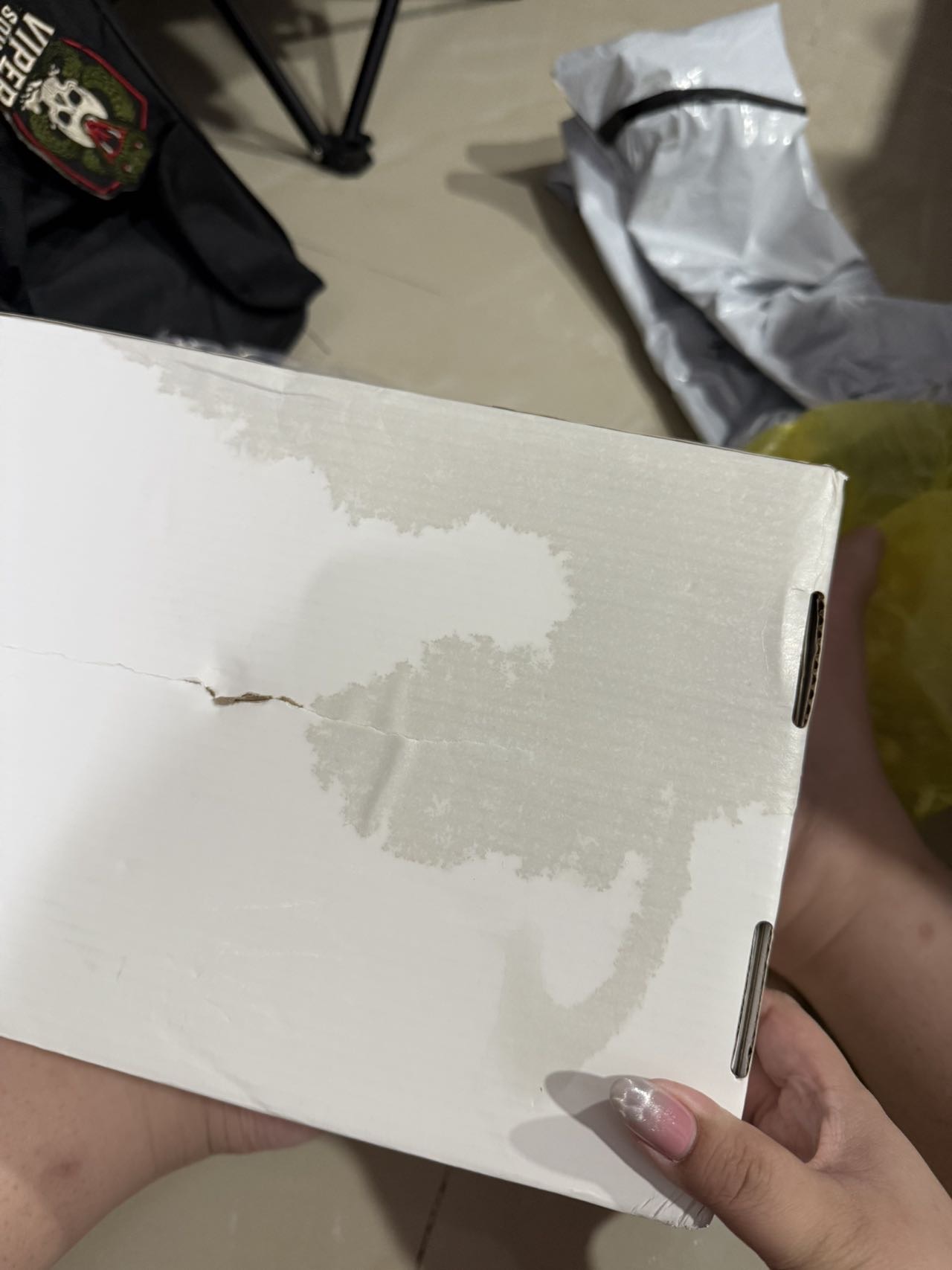 包裹破了一個洞 進水了🥲 可能是送的過程中送貨員弄破的吧🥲🥲🥲