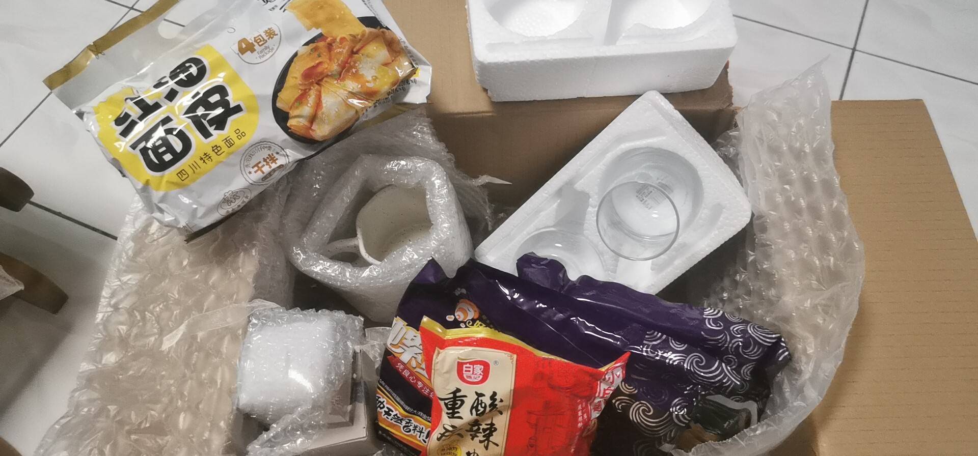简单拍个照这一次的邮寄满开心的是全部都安全送达即使有玻璃杯和陶瓷杯都完好无缺👍🏻谢谢客服耐心解答我一直担心玻璃杯会容易裂掉但幸好客服也劝我说不建议验货有保丽龙直接一起寄就好👍🏻但是这次失望的是迟到很久!5月20号就下了国际物流订单但6月17日才收到差不多要一个月的时间了!